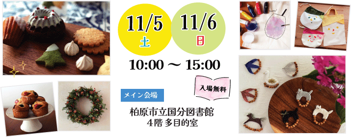 国分図書館4階多目的室がメイン会場です。出店ラインナップは2日間で入れ替わります。