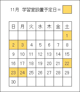 11月は、11月22日(土曜日)、11月23日(日曜日)です。