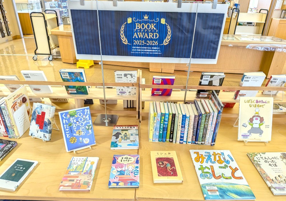 山東図書館で、文学賞や学術賞を今年度に受賞した図書150点の特集展示を行っています。