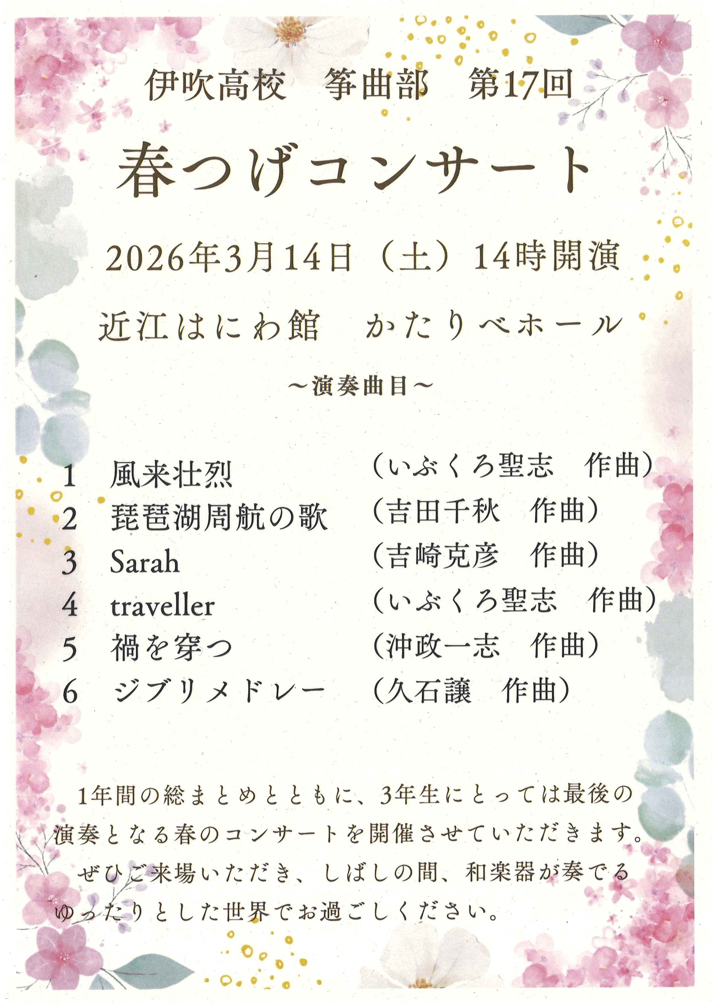 - 伊吹高校筝曲部第17回 春つげコンサート(近江図書館)