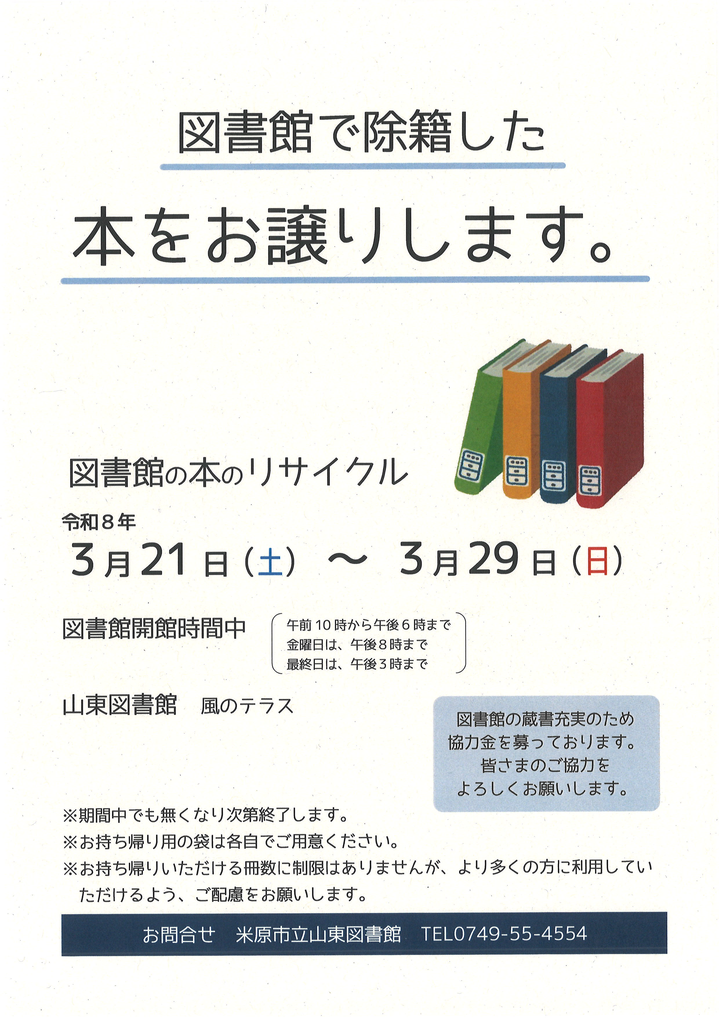 蔵書充実のための協力金をお願いしています。ご協力をよろしくお願いします。
