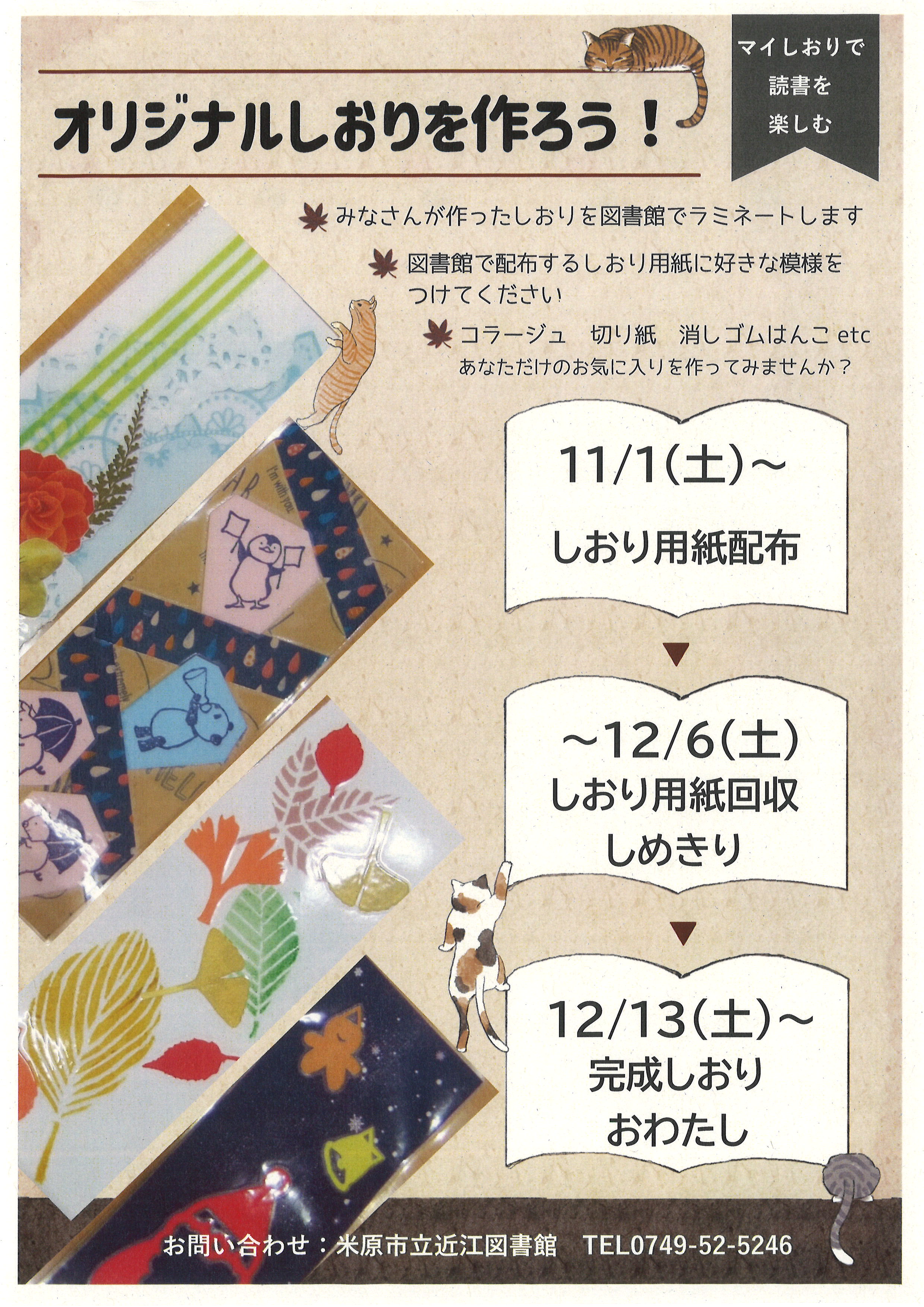 近江図書館で「オリジナルしおりを作ろう!」を開催します。