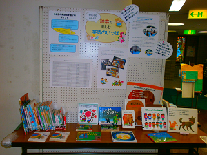 2階児童室入口の特集コーナー④で、「絵本で楽しむ英語のいっぽ」をテーマに、英語絵本の読み始めに向いている絵本を展示しています。「絵本で楽しむ英語のいっぽ」英語絵本を選び方や楽しみ方をご紹介するイベントとして年に2回行われています。