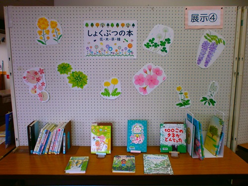 児童室入口の特集コーナー展示④ではしょくぶつに関する本を集めて展示しています。