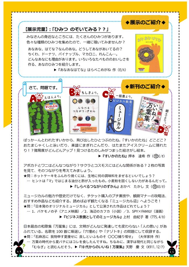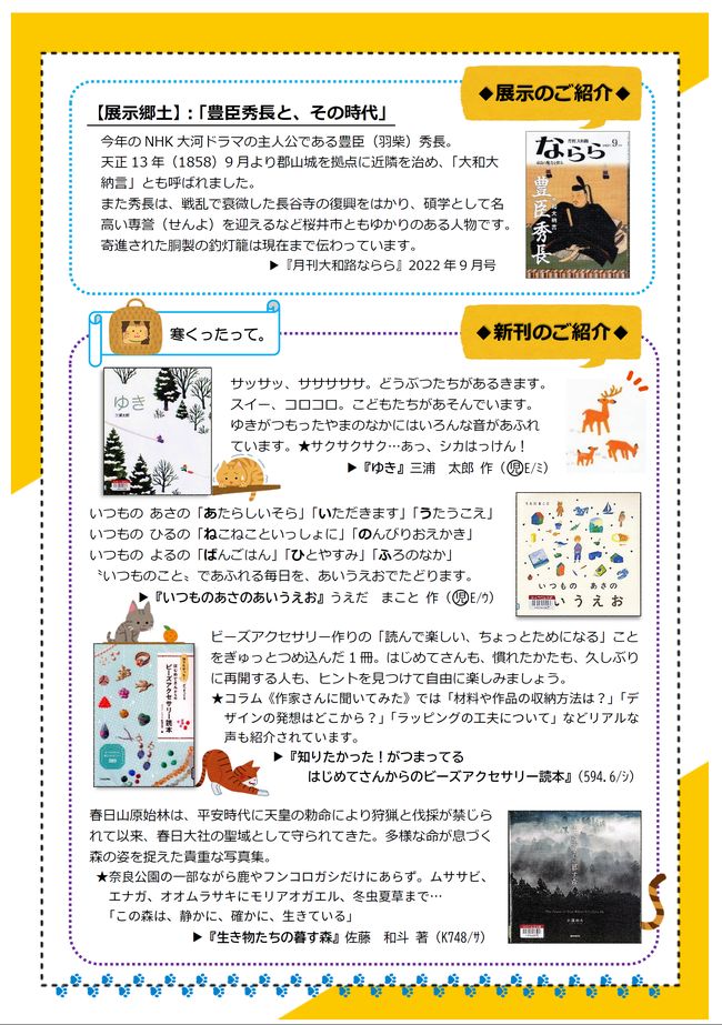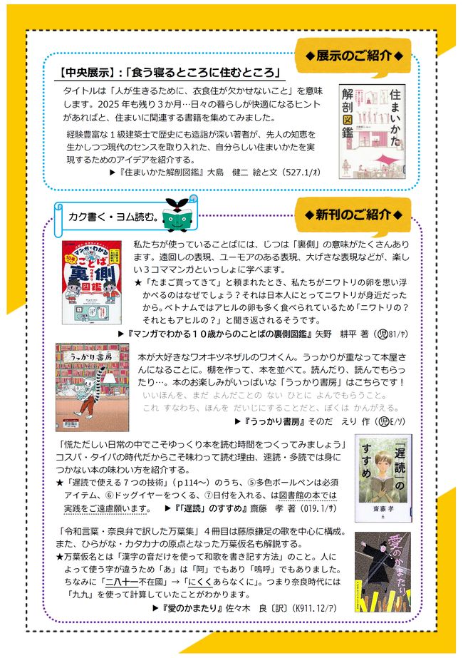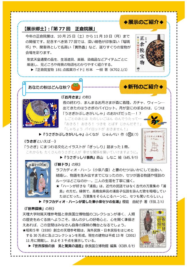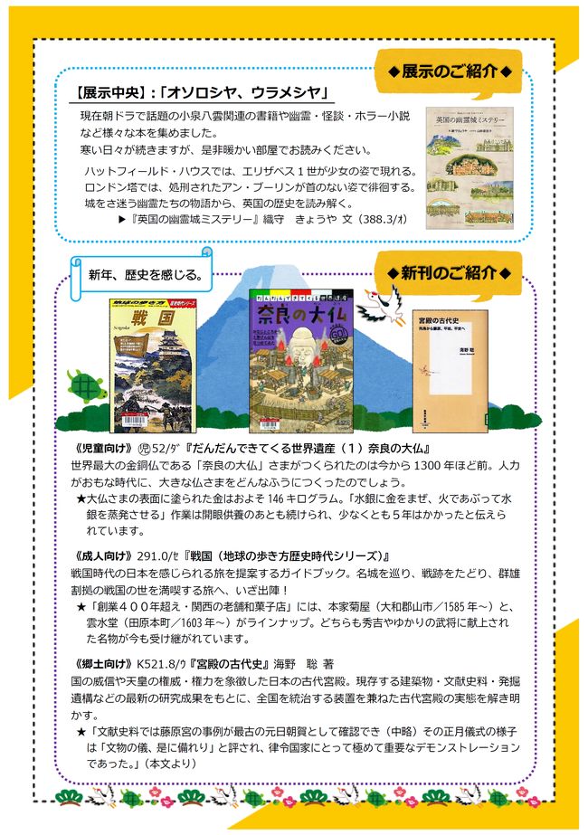 図書館の資料を探す 新着図書(WebOPAC) 新着図書リスト 新聞等所蔵一覧 郷土資料