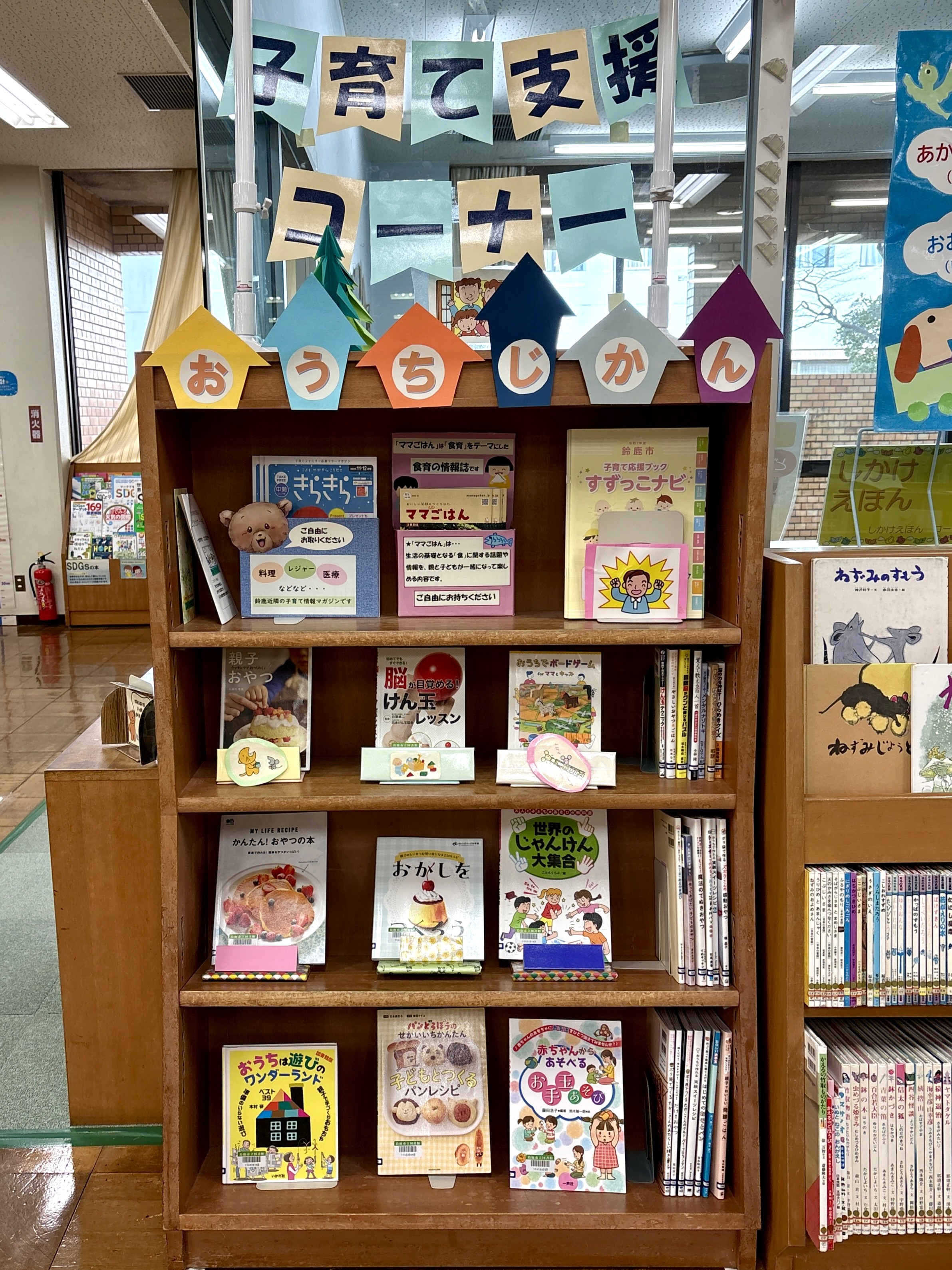 本館では“おはなしのへや”に書棚を設置し、サカタ様からの寄贈本を配架しております。