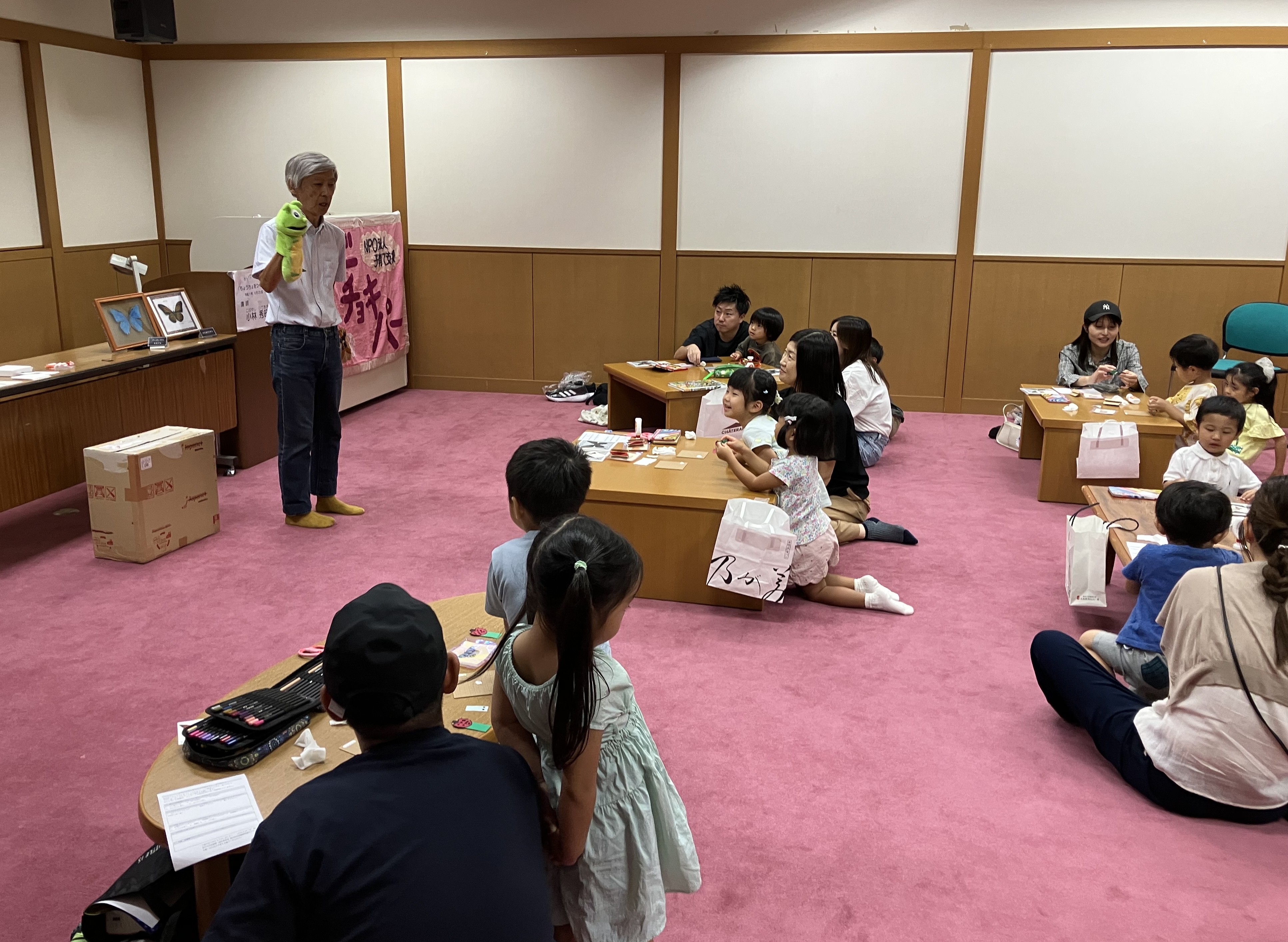 虫の大好きな先生が今年も来てくれました。3~6歳のお友だちと一緒に、ちょうちょにぬり絵をしたり、ちょうちょやてんとう虫のブックマーク(しおり)やバッタの飾りを作ったりしました。ぱたぱた動くちょうちょやてんとう虫には、思い思いにシールを貼って、自分だけのかわいい、かっこいい作品ができあがりました。 |