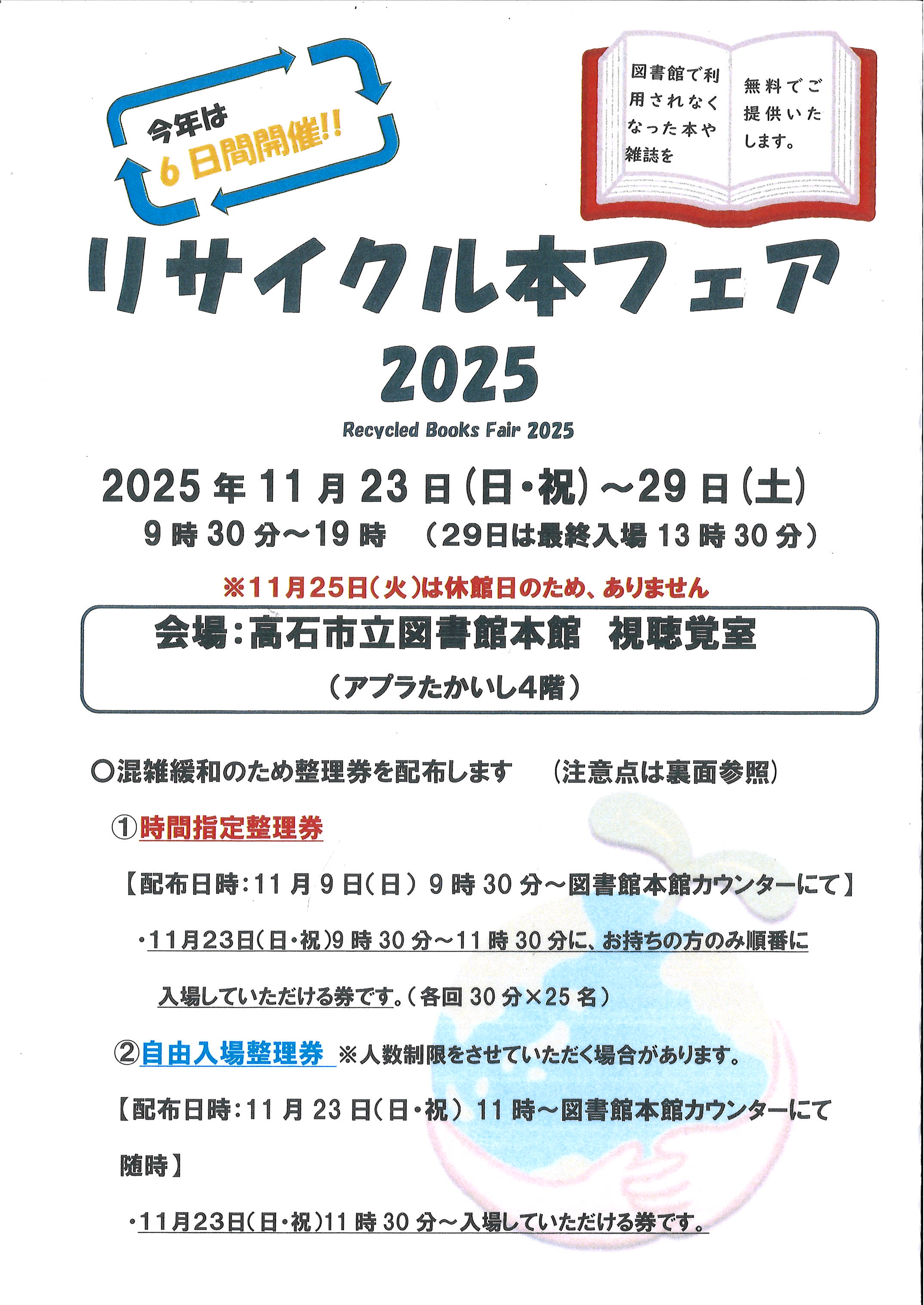 毎年多くの方に楽しみにしていただいている、"リサイクル本フェア"を今年も開催します!小説・雑誌・絵本など気に入った本をお持ち帰りいただけます。