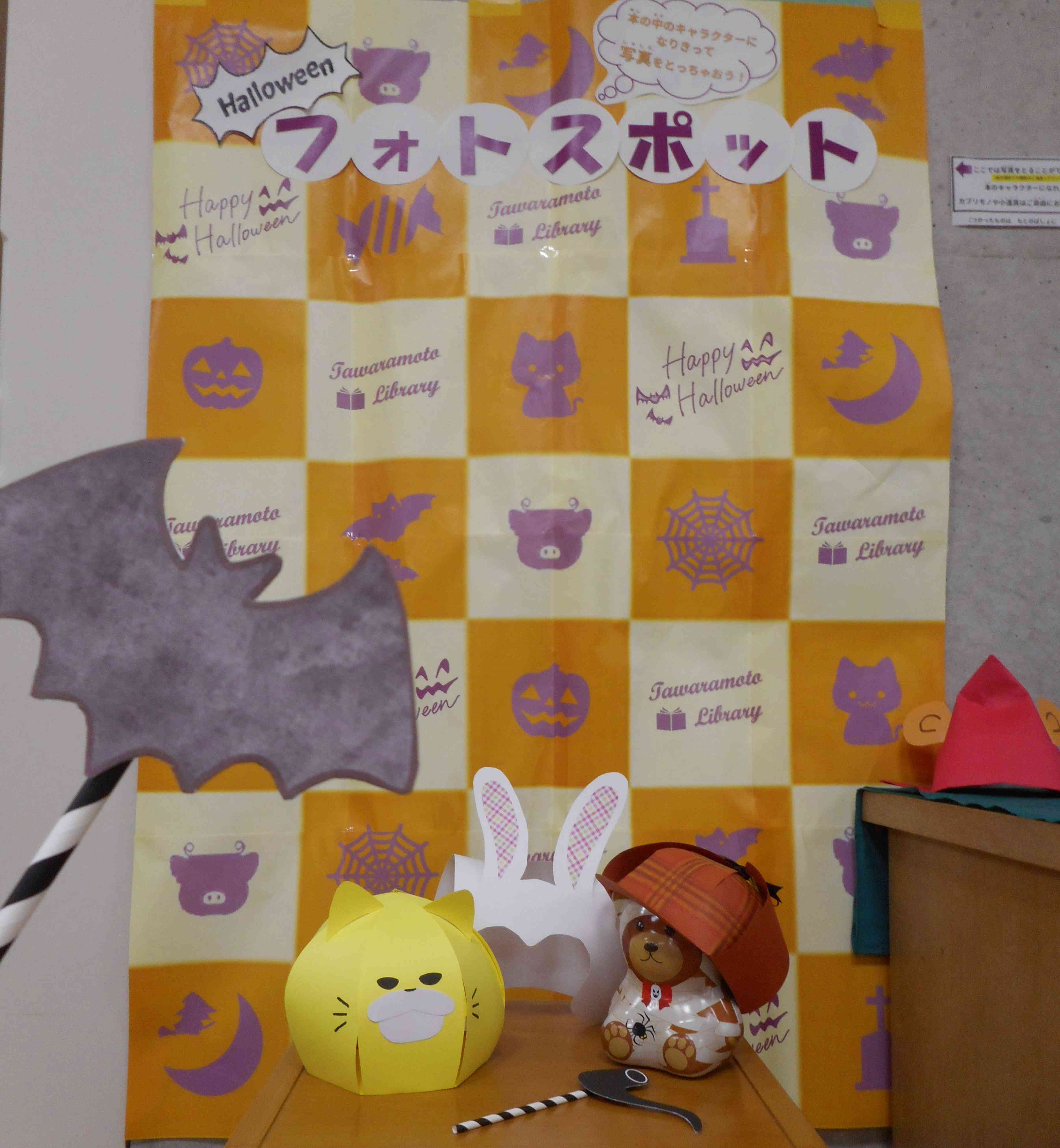 図書館の中に、かわいいハロウィンフォトスポットが登場しました。本の中の登場人物になりきって写真をとろう!