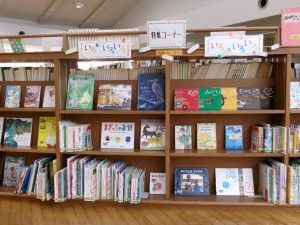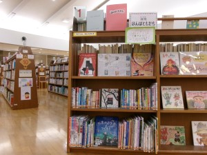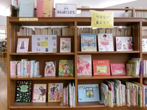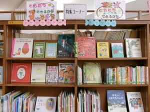 児童コーナーの入口付近で、作家さんを紹介するミニ特集をしています。
